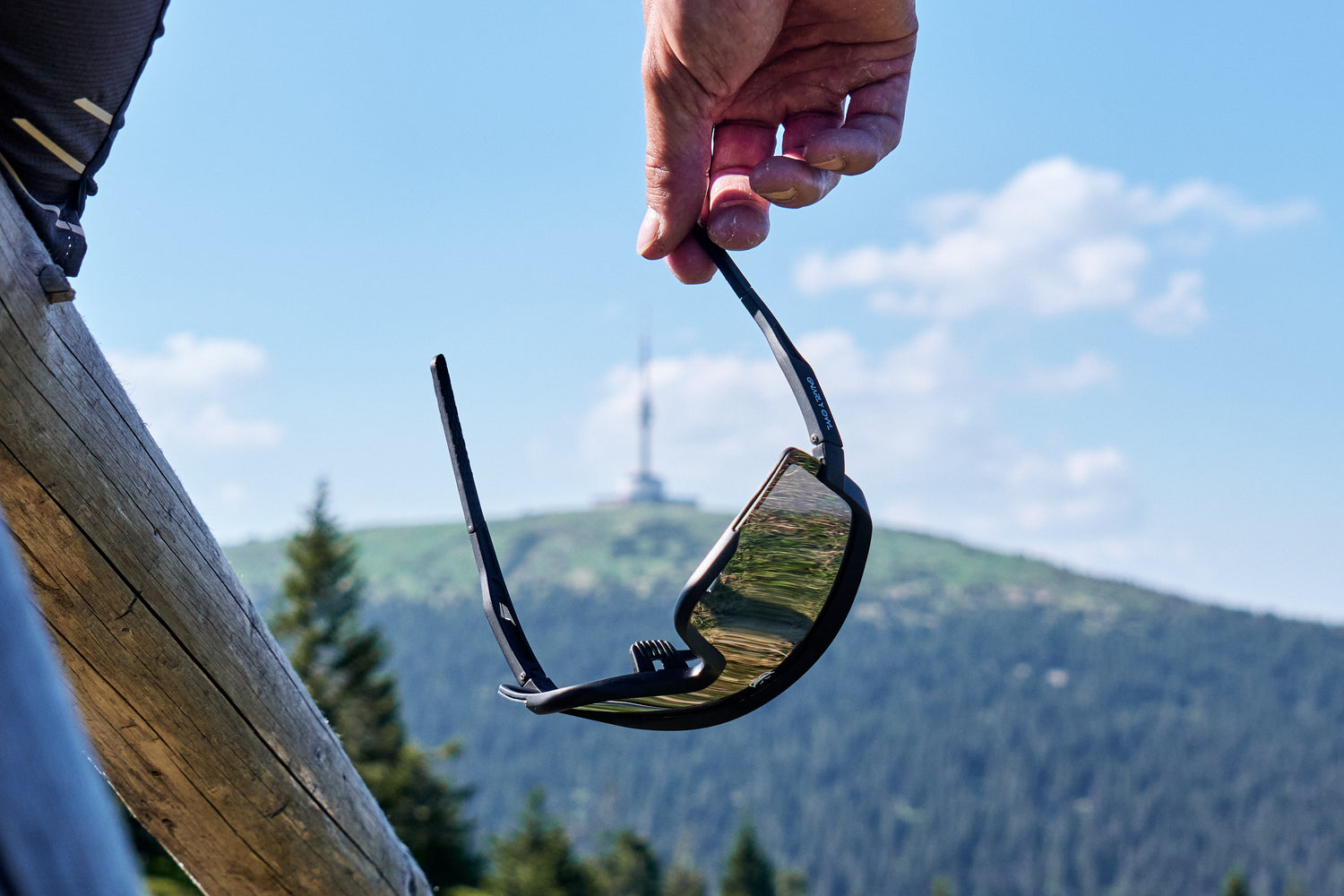 Součástí balení jsou brýle se 3 zorníky: barevný polarizační REVO zorník, čirý zorník a hnědý fotochromatický polarizační zorník.